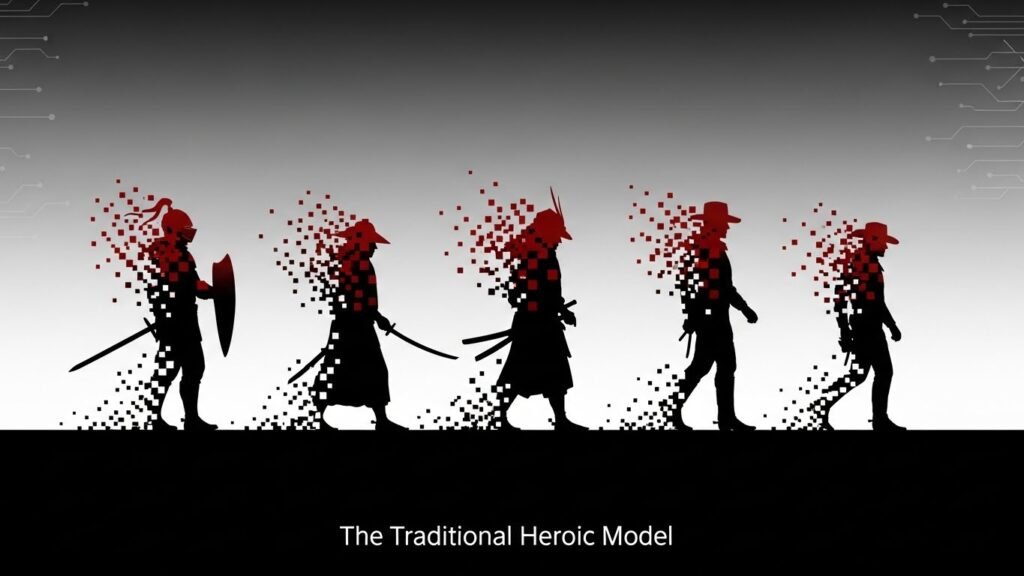 Mas aqui está o problema: esse sistema funcionava em sociedades relativamente homogêneas, com valores compartilhados e condições de vida estáveis. Quando todos concordam sobre o que é “coragem” ou “honra”, o herói pode ser um modelo claro. Mas quando vivemos em sociedades pluralistas, tecnológicas e em constante mutação, o próprio conceito de “herói” se torna contestado.
